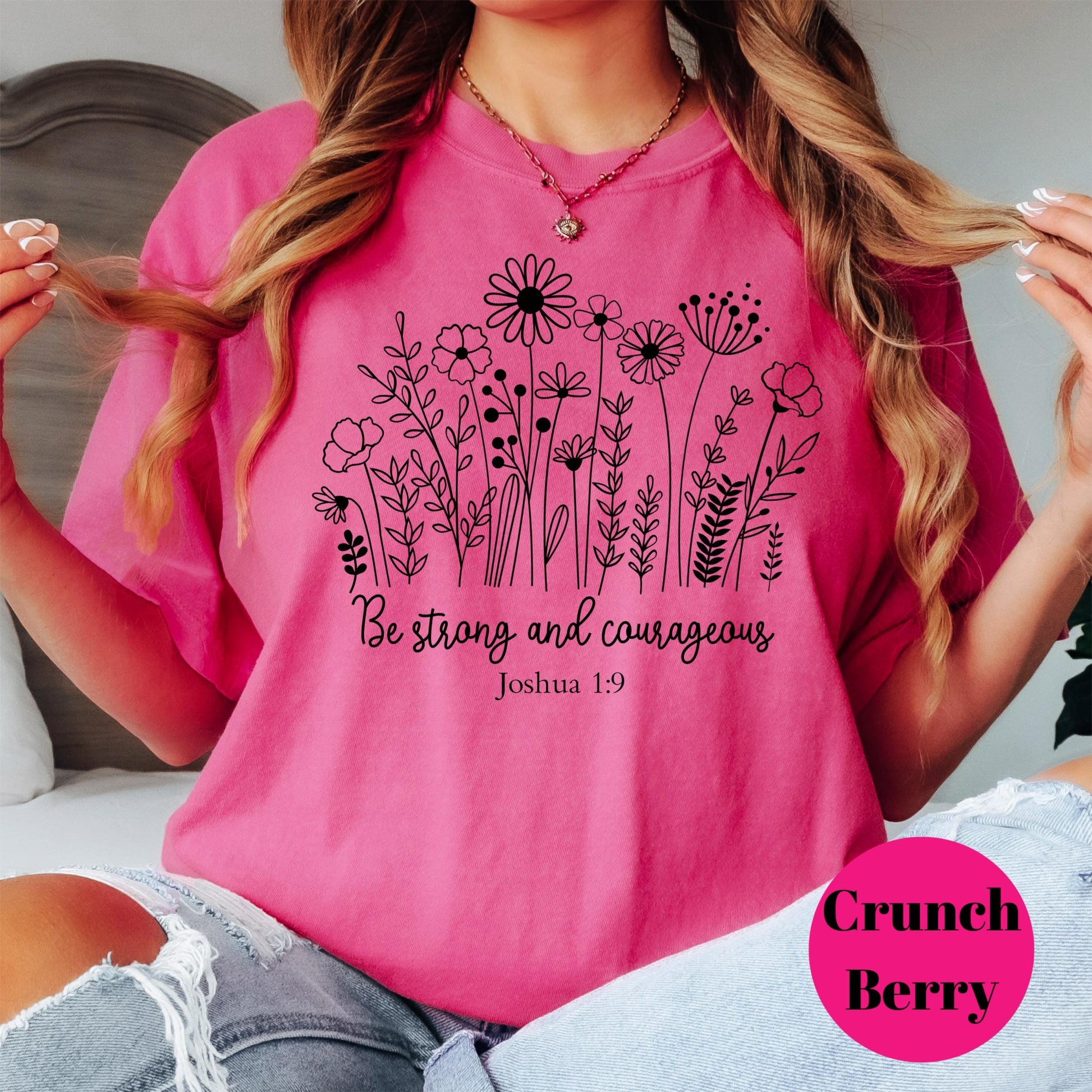 Encourage yourself and others with this empowering Comfort Colors® shirt featuring Joshua 1:9: “Be strong and courageous.” Surrounded by a graceful array of wildflowers, this design offers a daily reminder to walk in bold faith and trust in God’s plan.Made from soft, garment-dyed 100% ring-spun cotton, this unisex tee is cozy, durable, and beautifully faith-forward. Perfect for quiet reflection, small group gatherings, or as a heartfelt gift for someone needing a little courage, it’s a timeless blend of comfort and scripture. 💚 HOW TO ORDER 💚1️⃣ Browse our product photos to check sizing and color options. 📏 2️⃣ Select the quantity you'd like—order one or more! ✨ 3️⃣ Choose your preferred size and color from the drop-down menus. ✨ 4️⃣ Click “ADD TO CART” to place your selection in your cart. 🛒 5️⃣ When ready, click “PROCEED TO CHECKOUT” to complete your order. 🛒 6️⃣ Your order is now in production! We will carefully process it and have it ready to ship within 1-4 business days. 🎁📏 SIZING & FIT Our unisex Comfort Colors tees offer a relaxed, comfortable fit for both men and women. They feature a classic crew neck, short sleeves, and soft-washed, garment-dyed fabric for a vintage feel. Made with 100% ring-spun cotton, these high-quality shirts are perfect for everyday wear!✔ Relaxed, unisex fit ✔ Soft-washed, garment-dyed fabric ✔ Double-needle stitching for durability ✔ No side seams to maintain shape📦 PROCESSING & SHIPPING Your order will be processed and shipped as quickly as possible! Estimated timelines are: 🛍 Processing Time: 1-4 business days 🚚 Standard Shipping: 2-6 business days after productionShipping times may vary depending on your location. Please check estimated delivery dates at checkout.✨ CARE INSTRUCTIONS To keep your t-shirt looking fresh and long-lasting: ✔ Turn the shirt inside out before washing ✔ Use cold water on a gentle cycle ✔ Air dry for best results or tumble dry on low heat ✔ Do not bleach, dry clean, or iron directly on the design💚 CUSTOMER SATISFACTION We take pride in delivering high-quality products and excellent customer service! If you have any issues with your order, please message us—we’re happy to help and will work with you to find a solution. ❓ QUESTIONS? Need assistance? Feel free to message us! We aim to respond to inquiries within 24-48 business hours. THANK YOU FOR SHOPPING WITH US!We appreciate your support! Be sure to check out our shop for more fun and unique t-shirt designs before completing your order. We’d love to serve you again! 💕