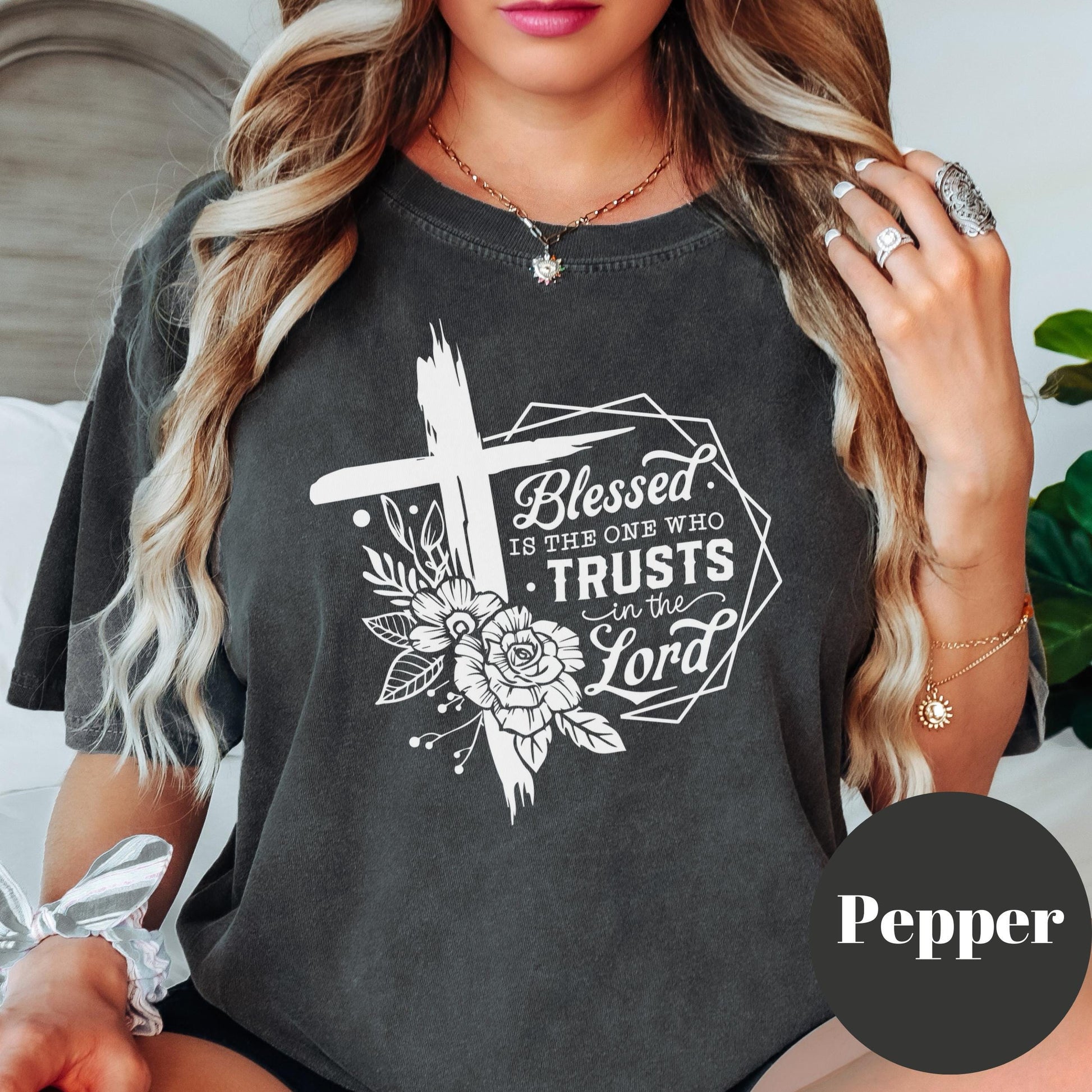 Show your faith with bold beauty in this Comfort Colors® “Blessed is the one who trusts in the Lord” tee, featuring a distressed cross, elegant floral accents, and a powerful reminder from Jeremiah 17:7. This soft yet durable shirt pairs spiritual strength with floral charm, perfect for Bible studies, worship groups, and everyday encouragement.