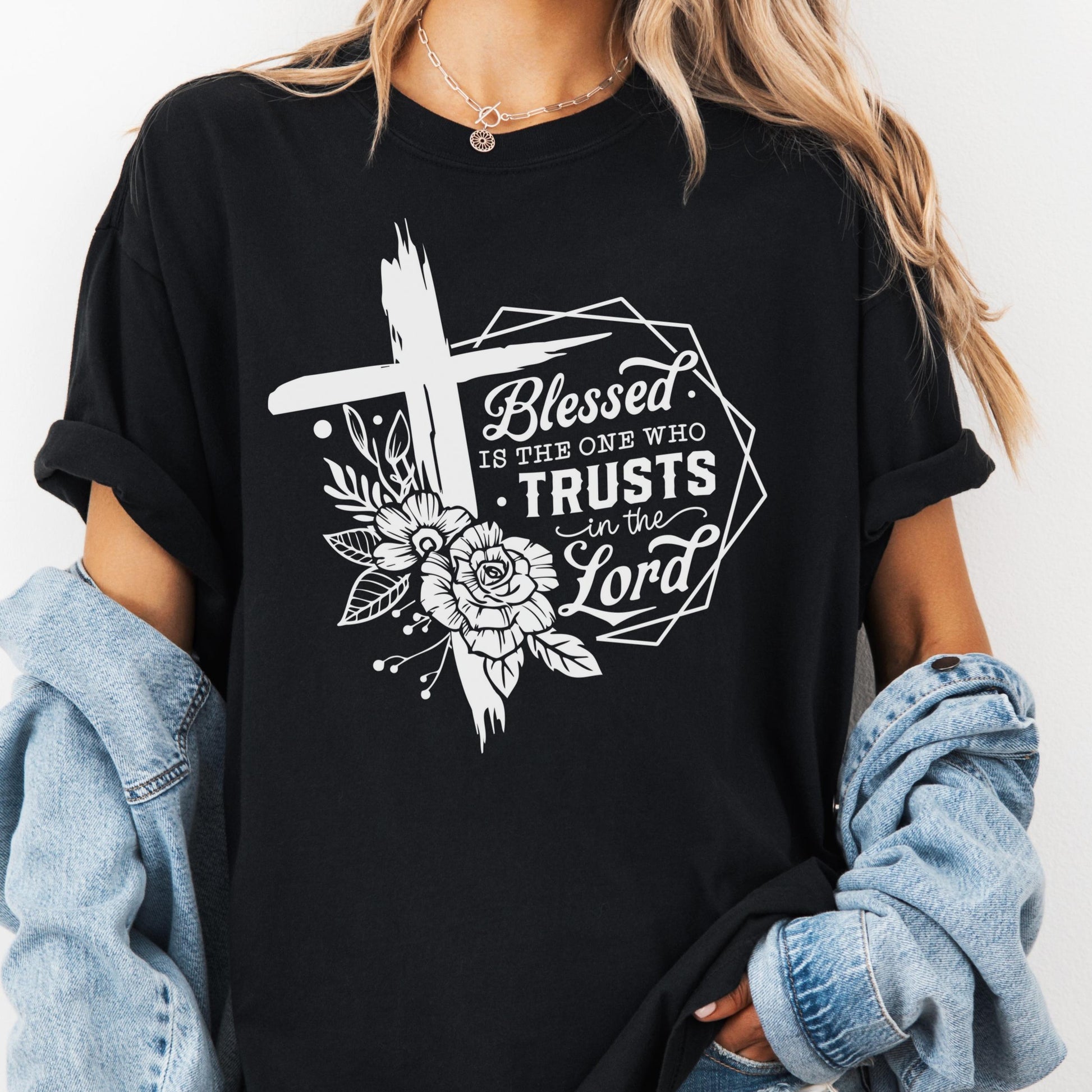 Blessed Trusts in the Lord Shirt, Comfort Colors® Christian Floral Cross Tee, Religious Shirt, Jeremiah 17:7 Shirt, Faith-Based Gift Tee