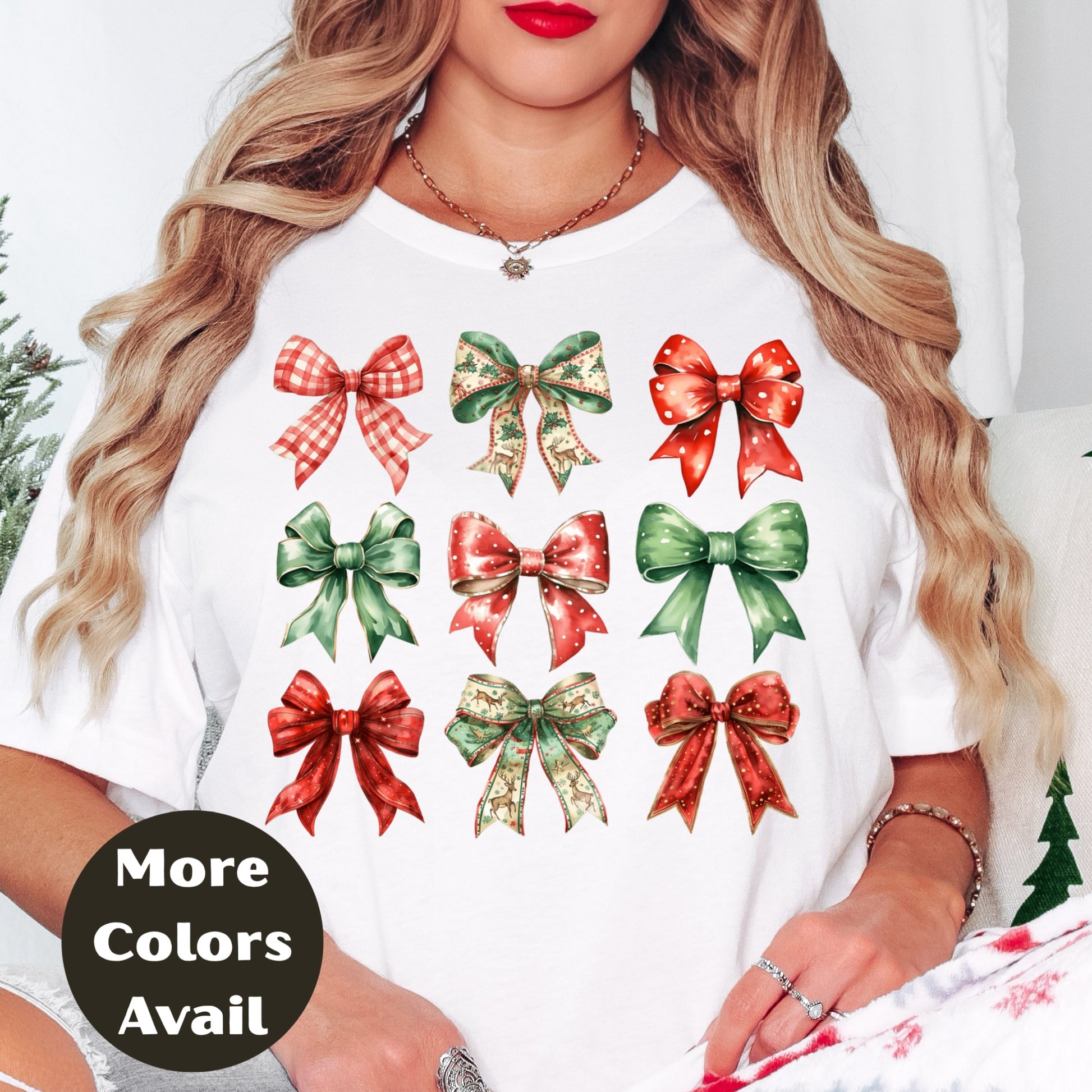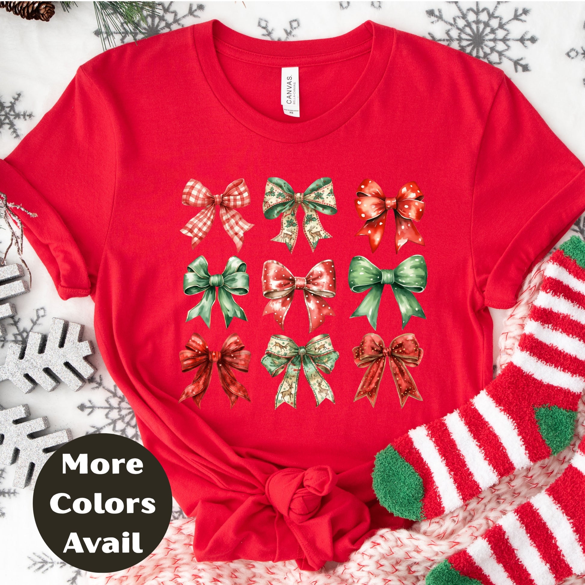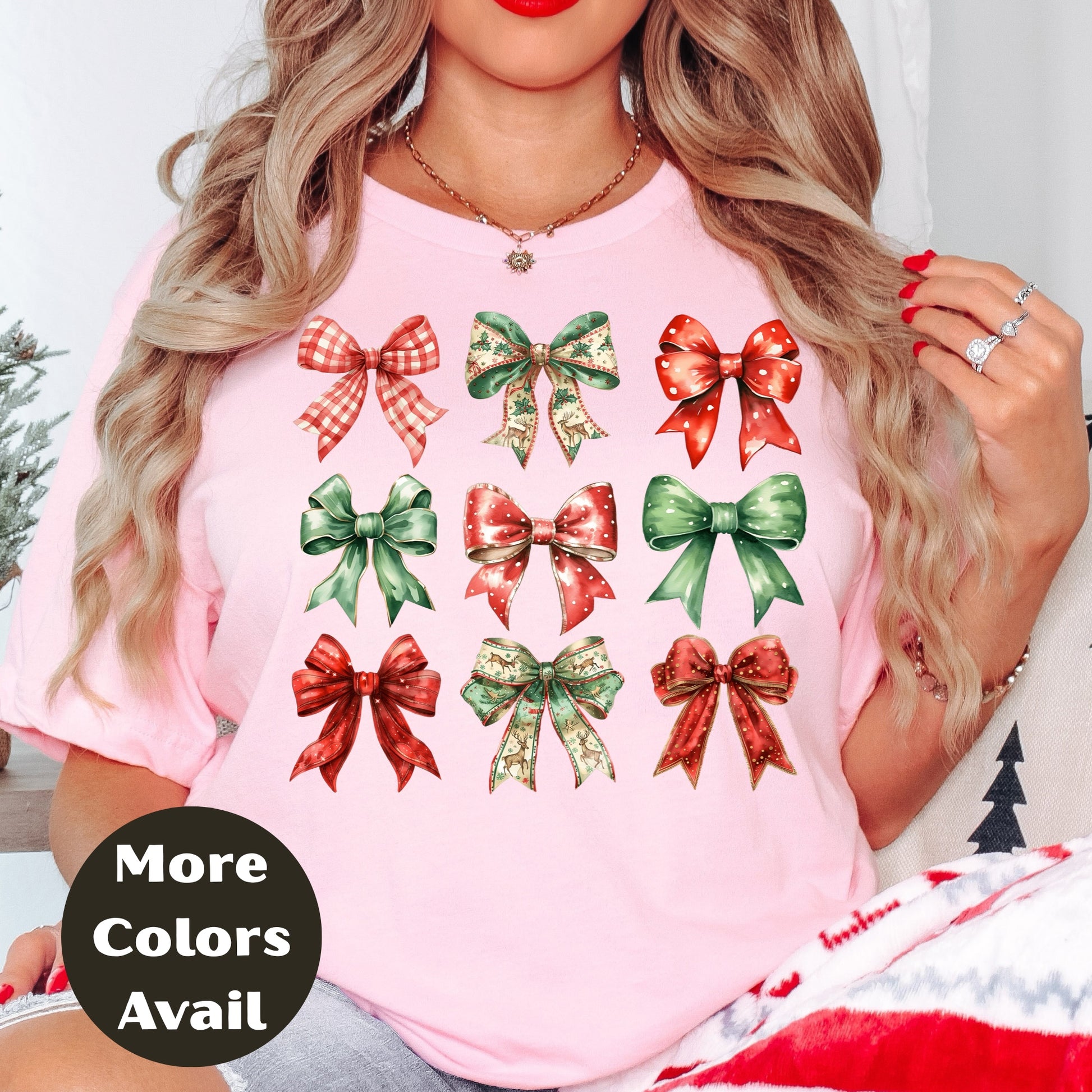 Christmas Bows Shirt or Sweatshirt – Festive Holiday Bow Graphic Top – Small-4XL and Plus Size – Multiple Colors