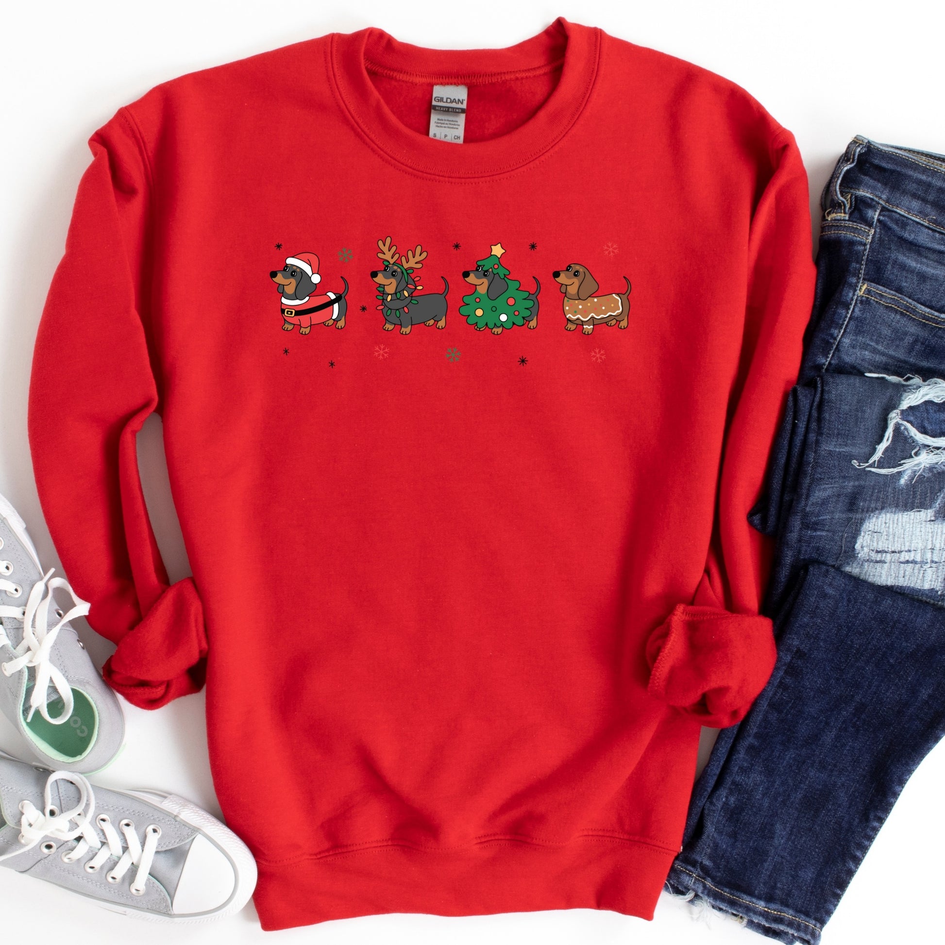 Dachshund Christmas Shirt or Sweatshirt: Cute Holiday Dogs, Multiple Colors, S-4XL