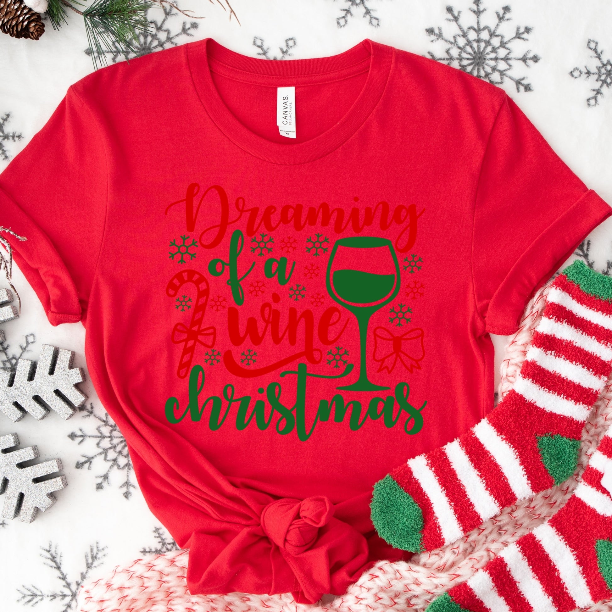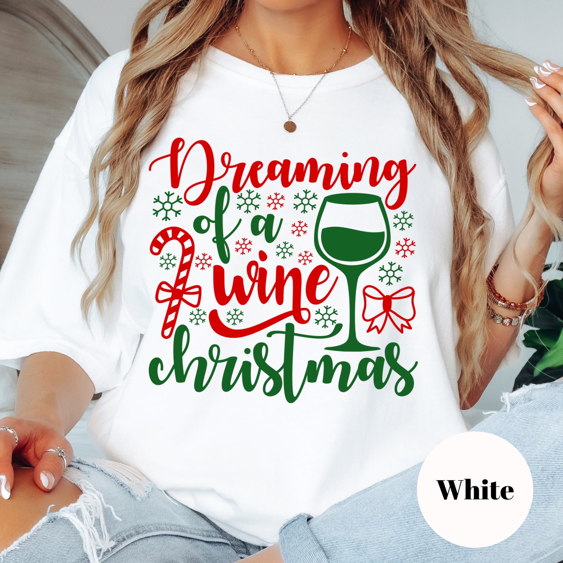 Sip in style with the Dreaming of a Wine Christmas Shirt or Sweatshirt! Funny holiday wine lover top in multiple colors, sizes S-4XL including plus size.