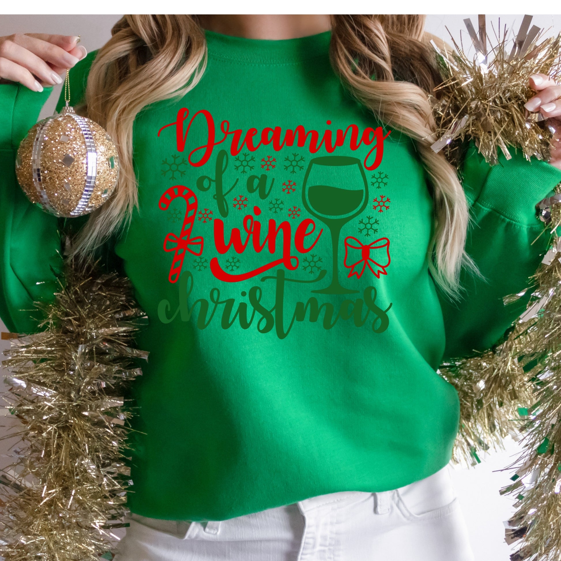 Dreaming of a Wine Christmas Shirt or Sweatshirt: Funny Holiday Wine Lover Top, Multiple Colors, S-4XL