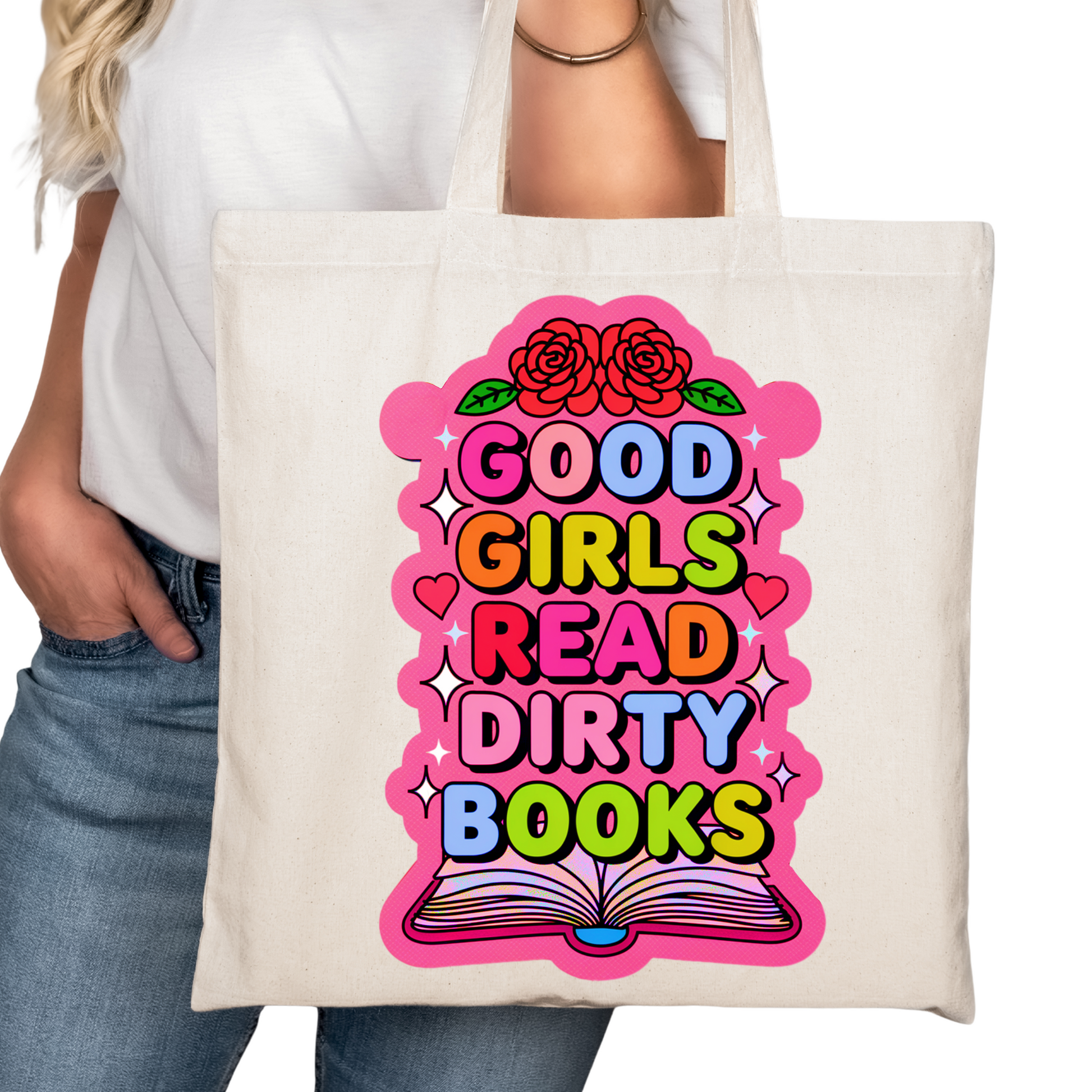Good Girls Read Dirty Books Bookish Tote Bag – Reading Tote for Book Lovers – Book Reader Bag - Romance Reader Tote - Book Store Merchandise