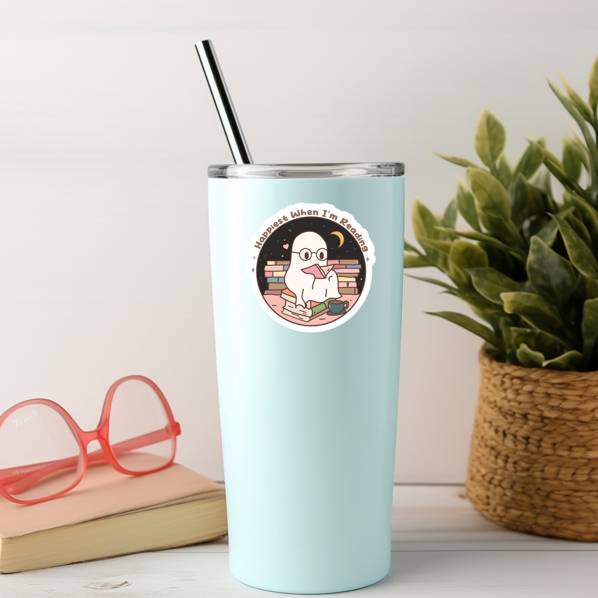 Happiest When I'm reading Ghost Reading Books β 3" Waterproof Bookish Sticker with Holo Overlay β Reading, Books, Reader Gift, Book Lover