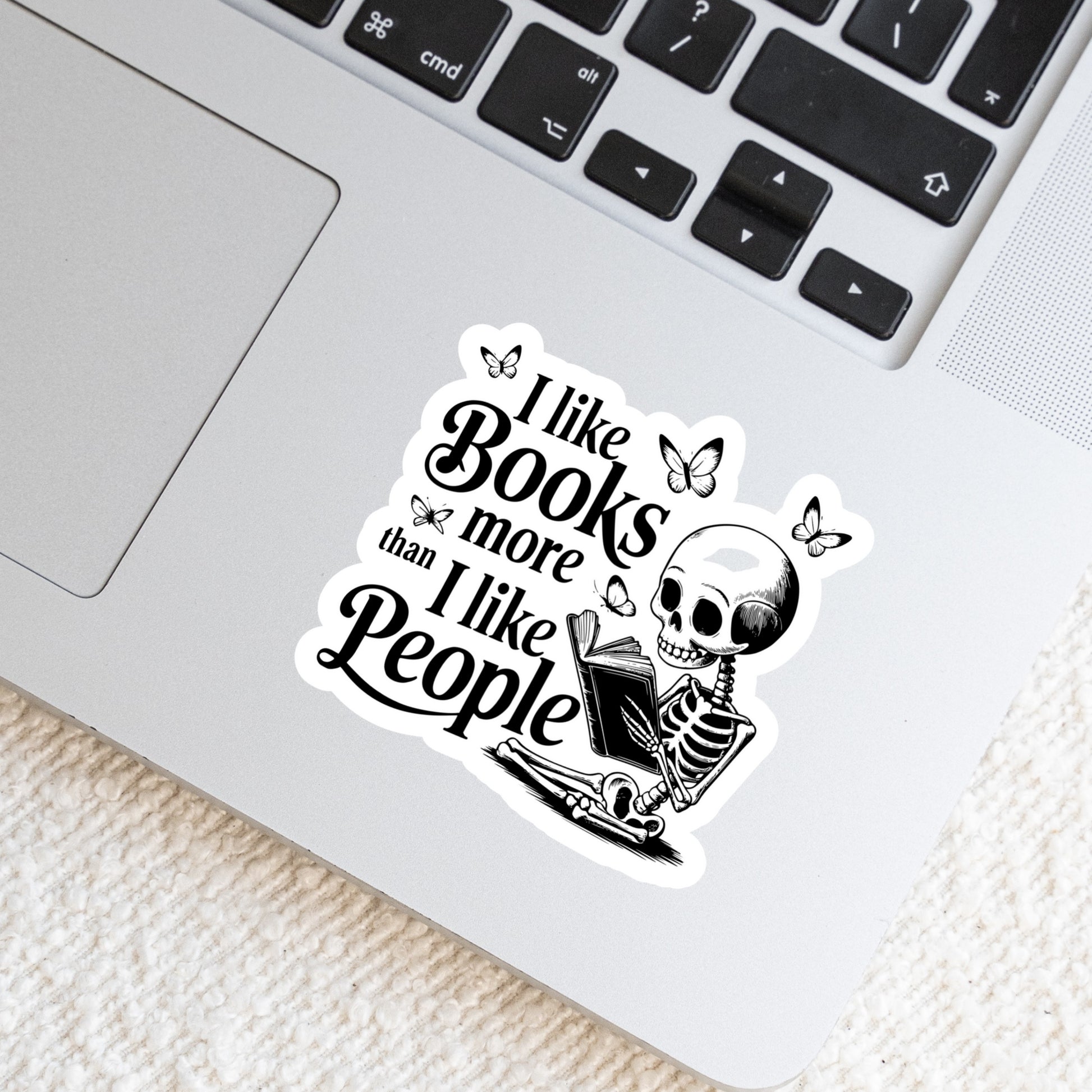 I Like Books More than People Funny Skeleton β 3" Waterproof Bookish Sticker with Holo Overlay β Reading, Books, Reader Gift, Book Lover