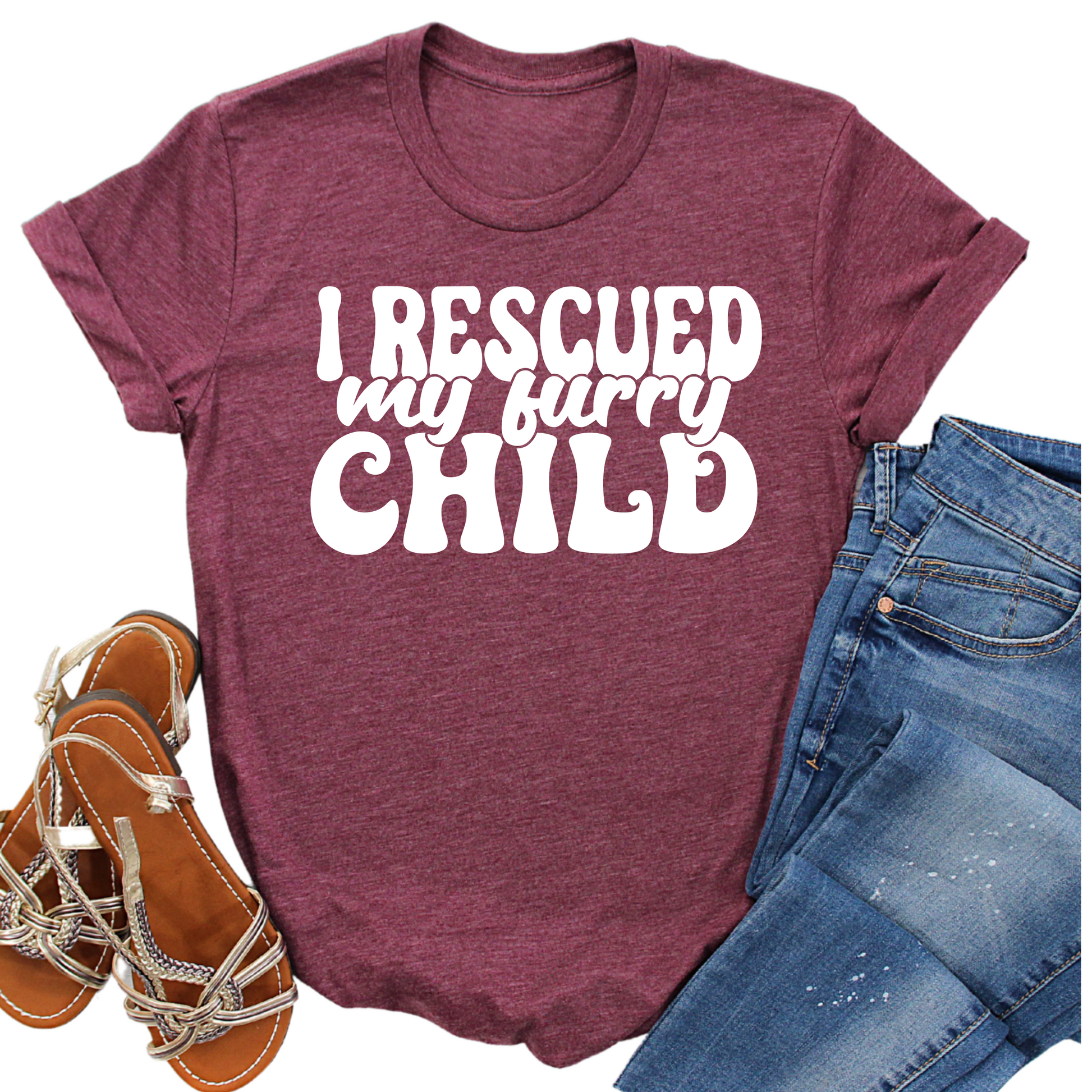 I Rescued My Furry Child Womans T-Shirt - Funny Dog Mom Pet Rescue Graphic Tee - Animal Lover Shirt - Casual Everyday Top for Pet Owners