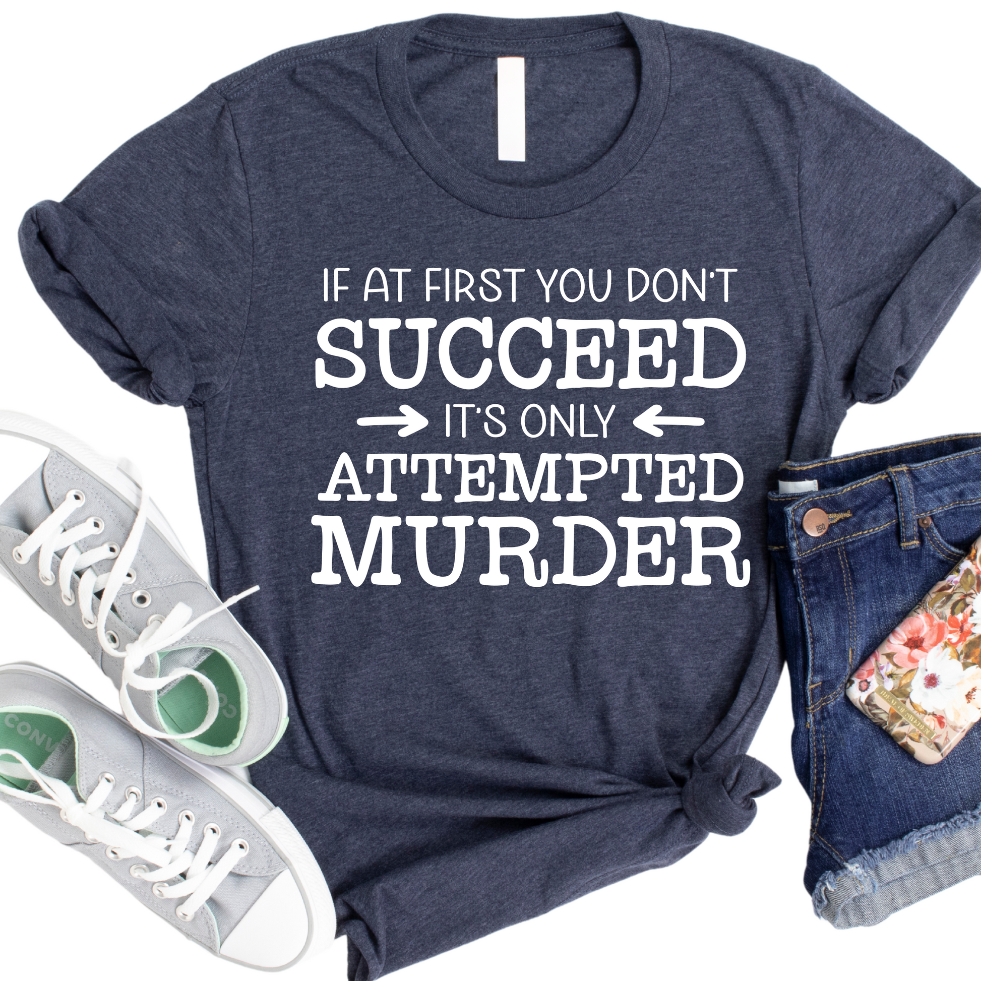 Dark Humor Statement: Share your love for clever, sarcastic humor with this "If At First You Don’t Succeed, It’s Only Attempted Murder" tee.