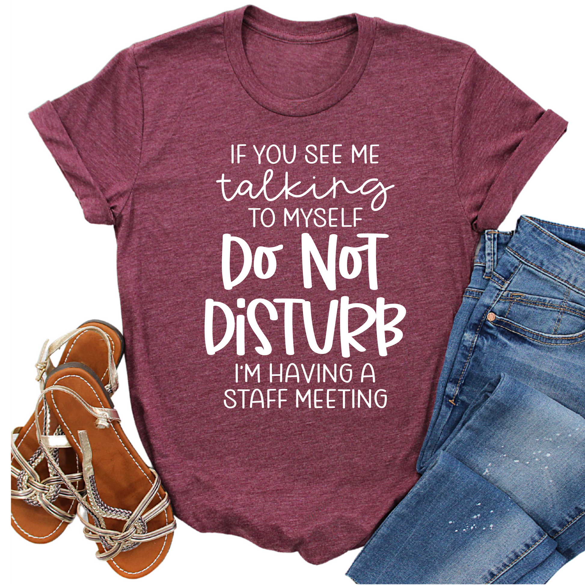 Humor with a Twist: Features the phrase, "If You See Me Talking to Myself, Do Not Disturb. I’m Having a Staff Meeting," for a laugh-out-loud statement.