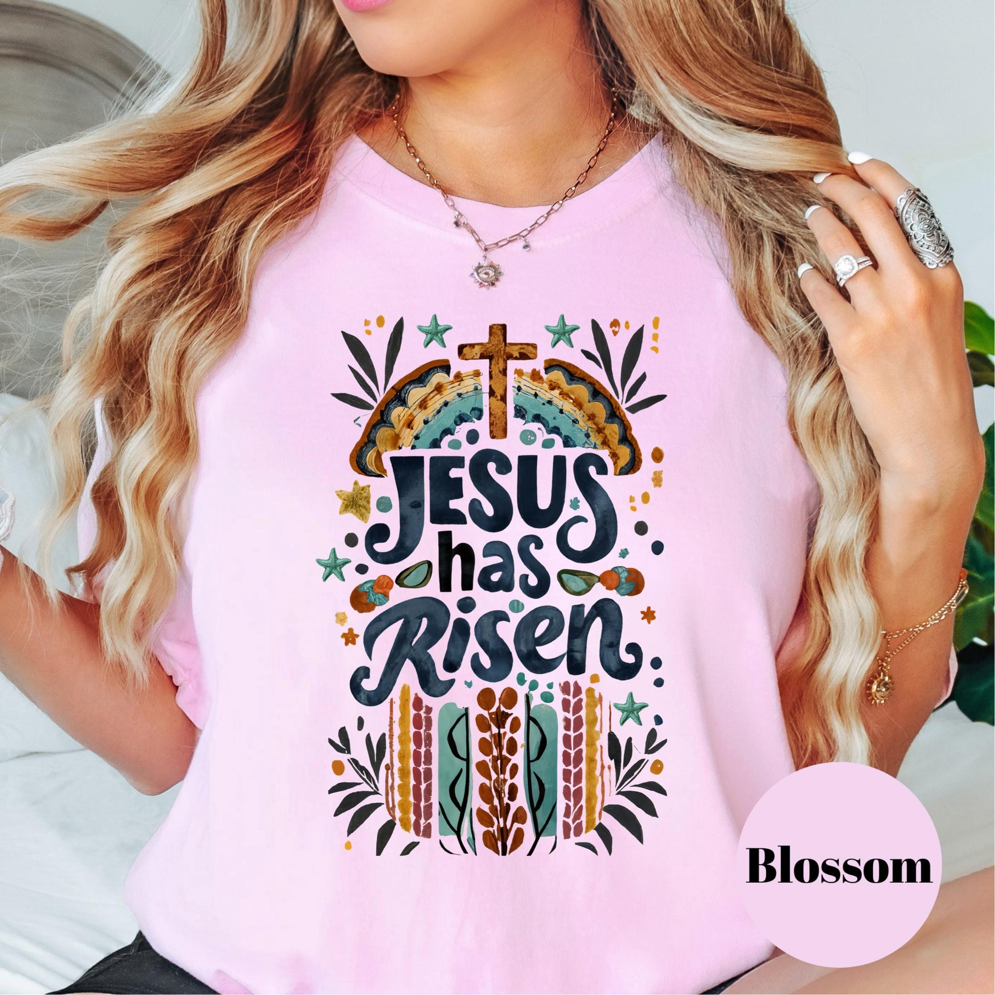 Jesus Has Risen Shirt, Comfort Colors® Retro Christian Tee, Easter Faith Graphic Shirt for Women, Resurrection Sunday Shirt, He Is Risen Tee