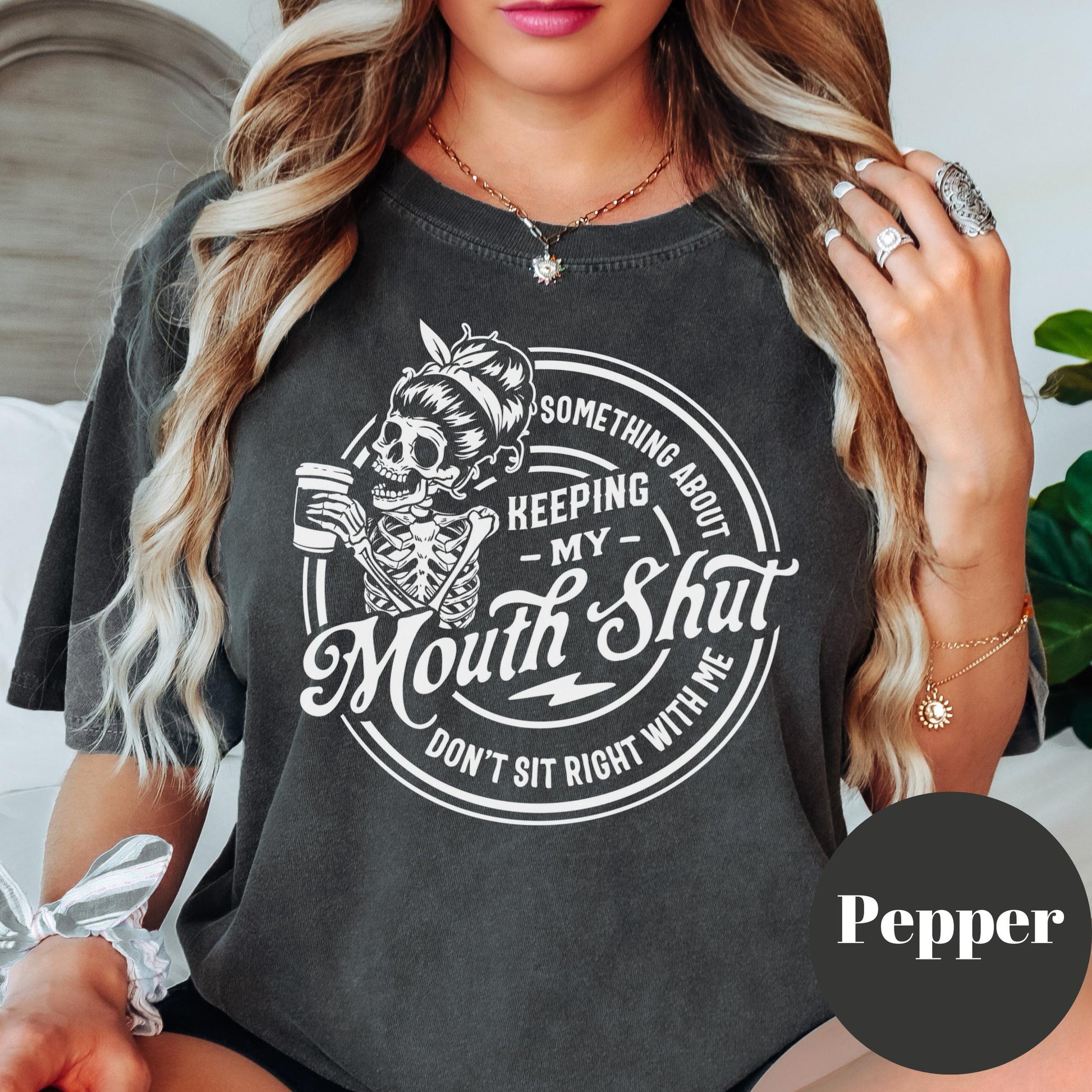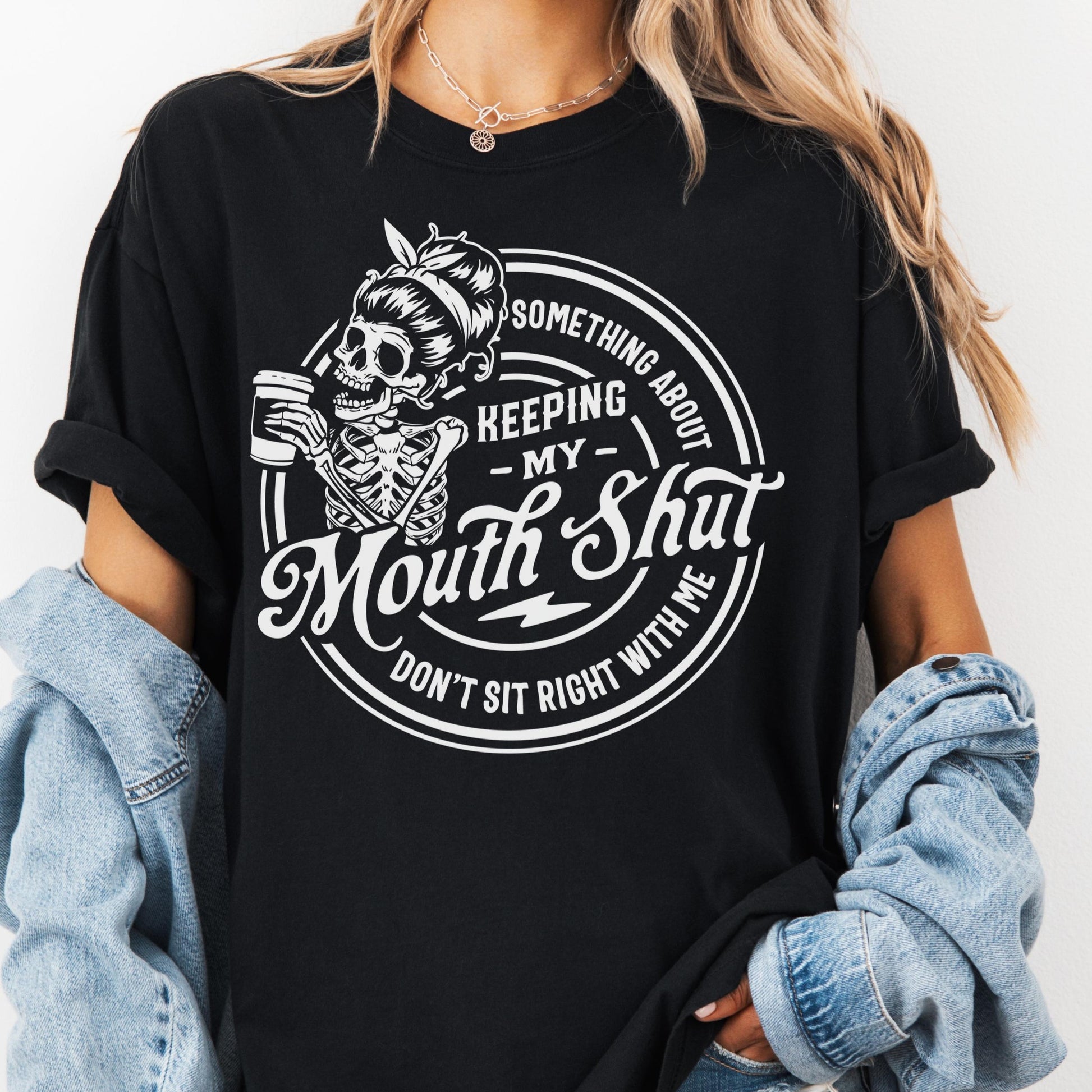 Keeping My Mouth Shut Shirt, Comfort Colors® Funny Skeleton Graphic Tee, Spicy Attitude Shirt for Women, Sarcastic Snarky Gift Tee