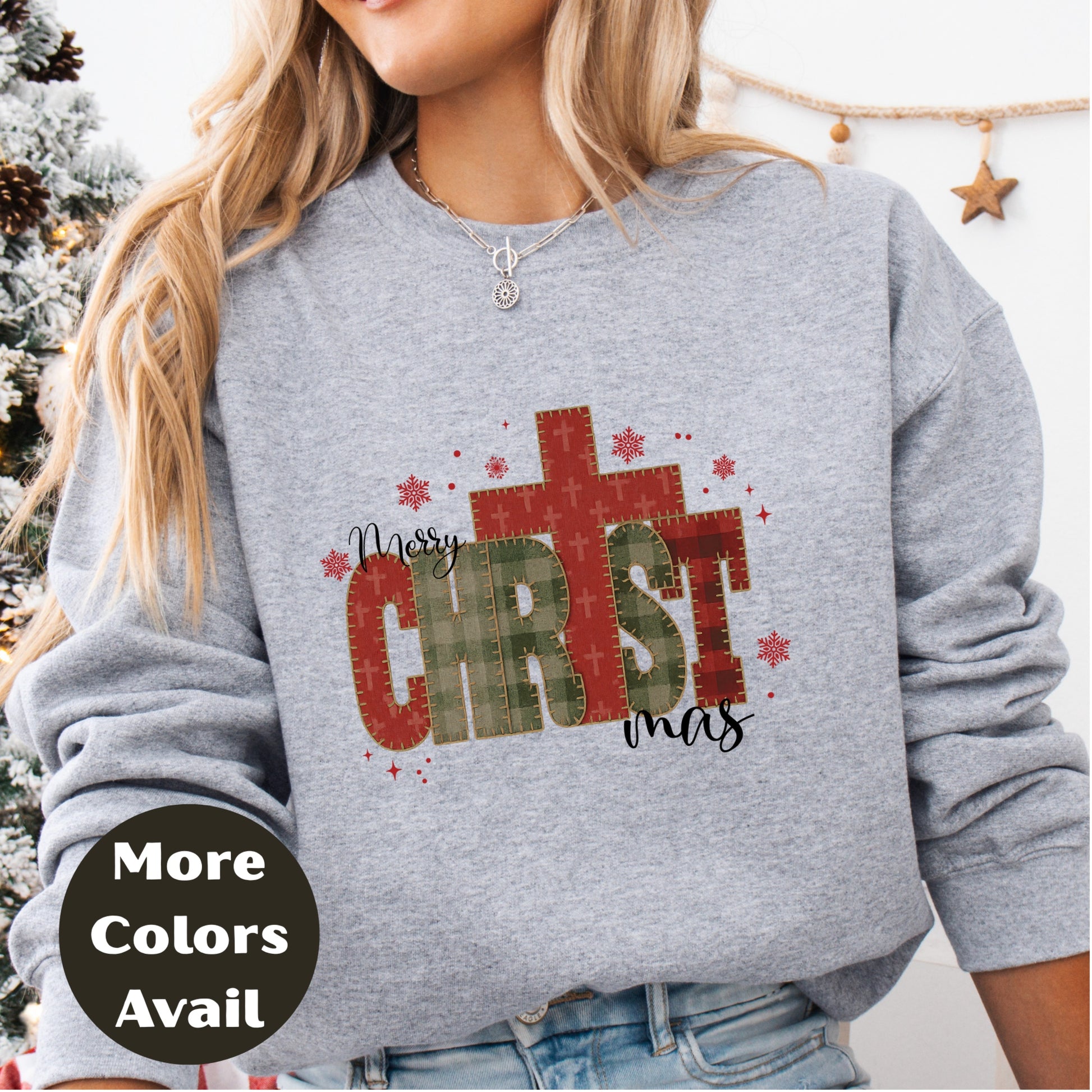 Merry CHRISTmas Cross Shirt or Sweatshirt – Rustic Plaid Christian Christmas Top – S-4XL Plus Size – Multiple Colors