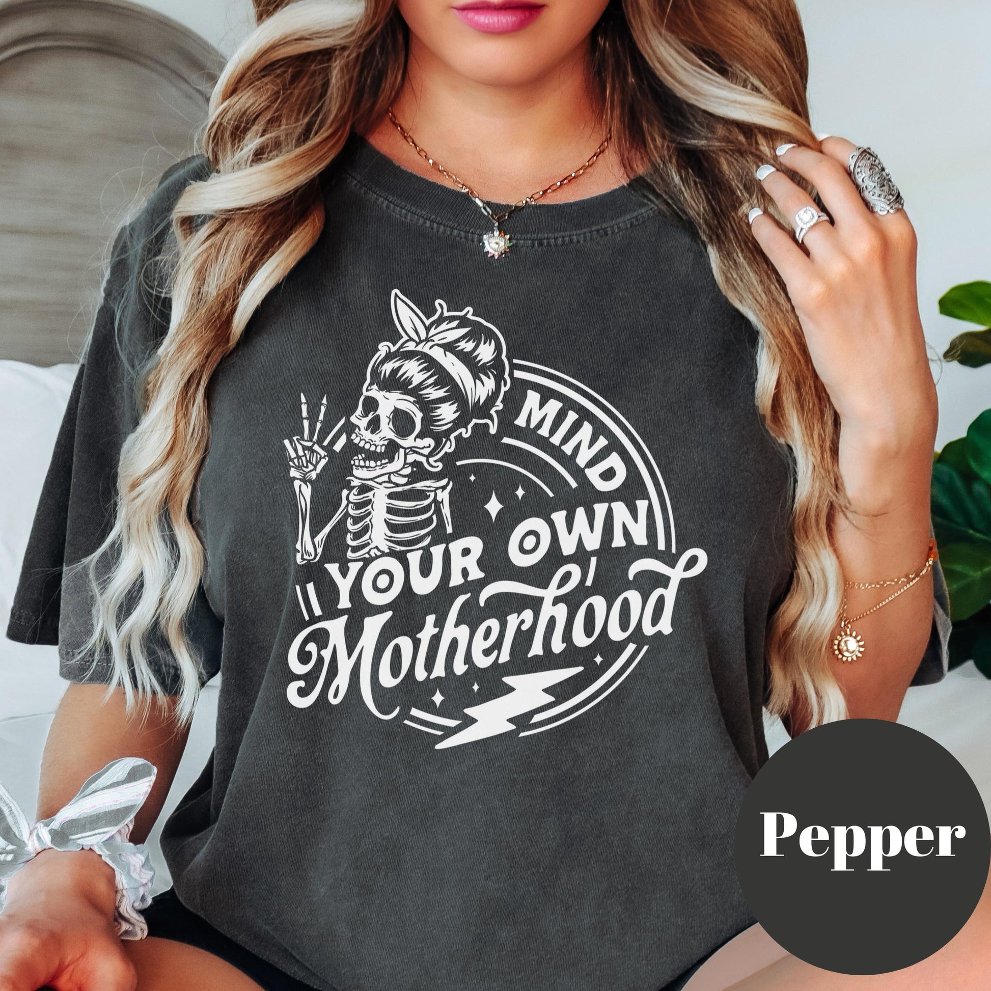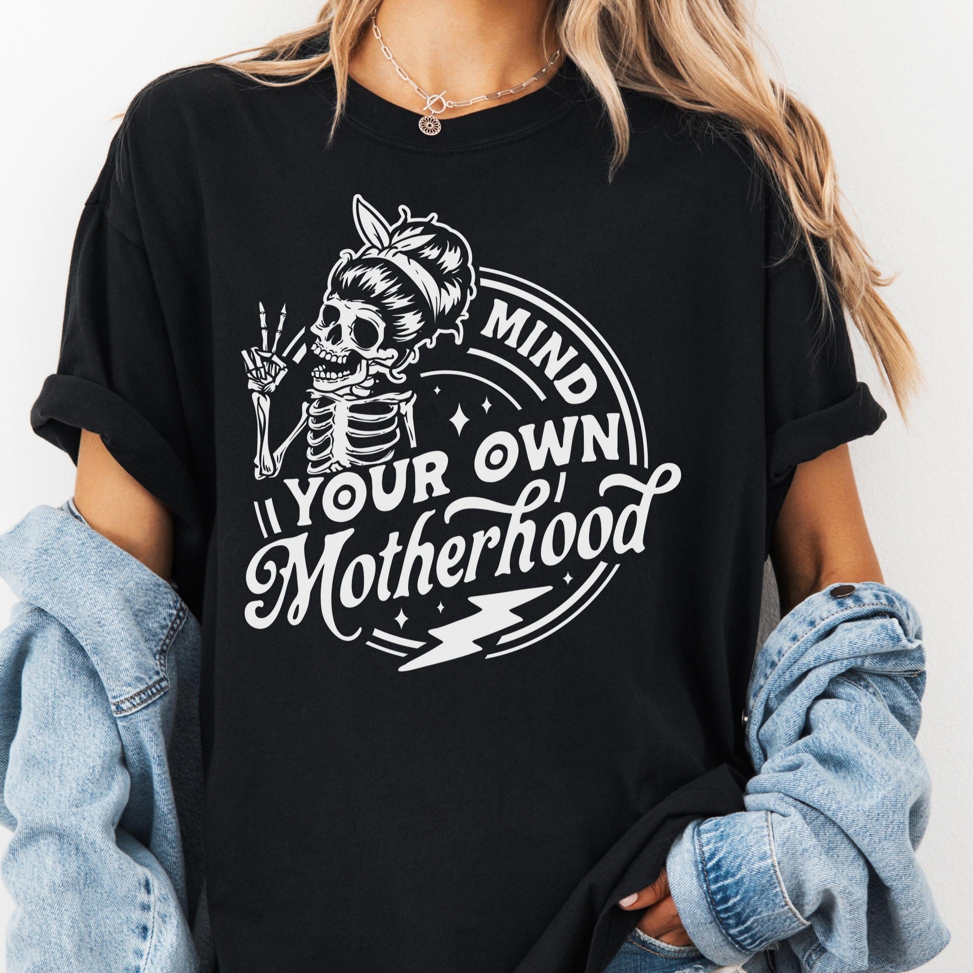 Mind Your Own Motherhood Shirt, Comfort Colors® Funny Mom Life Tee, Skeleton Mama Shirt, Tired Mom Gift, Motherhood Boundaries Shirt
