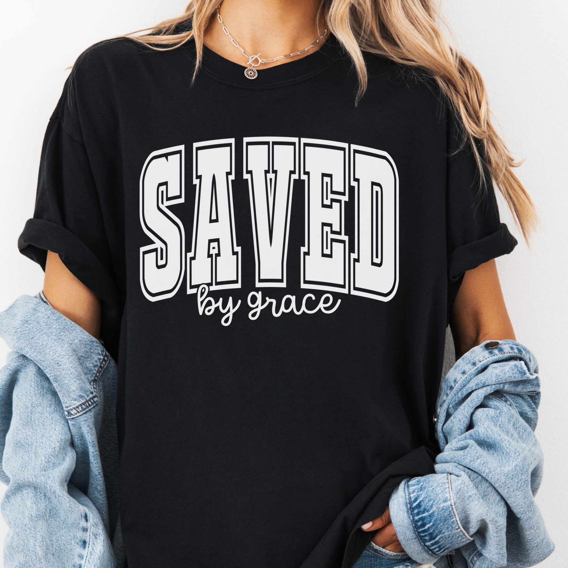 Saved by Grace Comfort Colors® Shirt, Christian Graphic Tee for Women, Faith Based Shirt, Bible Verse Shirt, Spiritual Gift for Her
