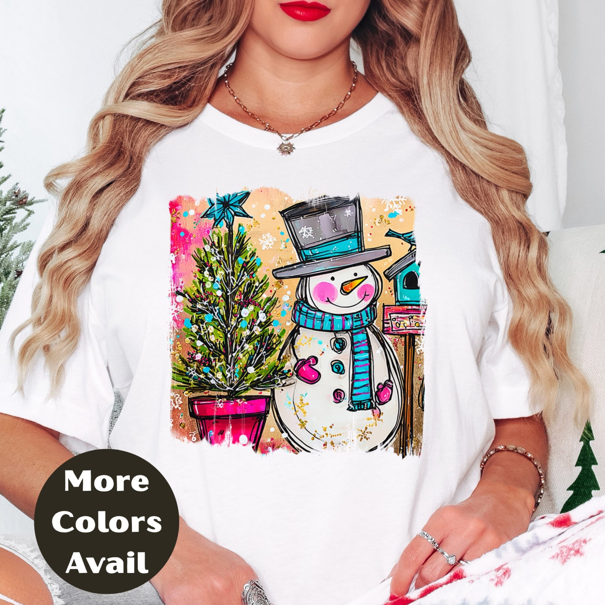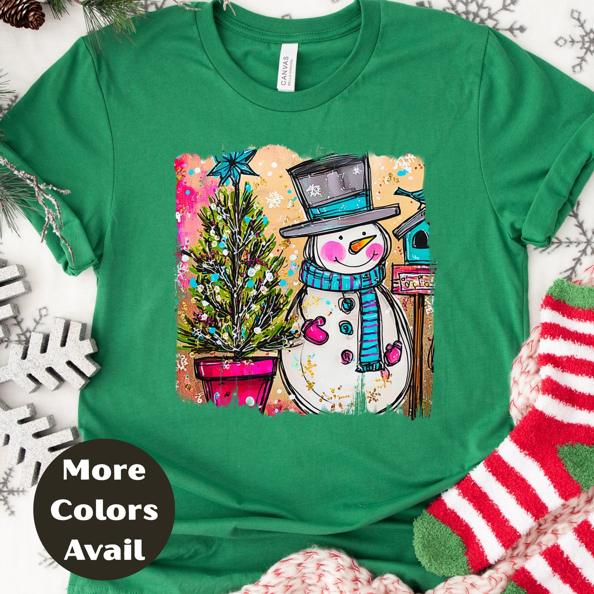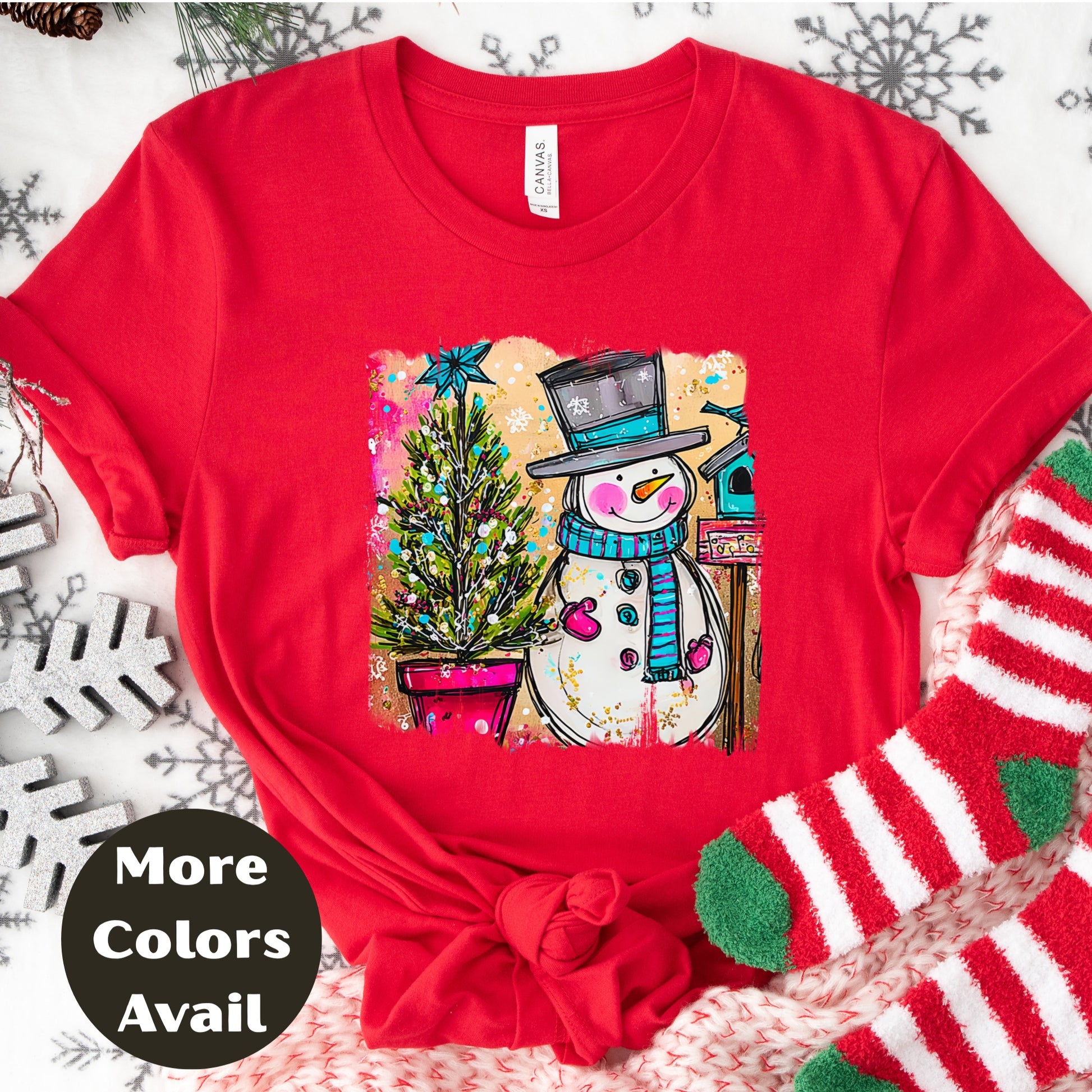 Snowman & Christmas Tree Shirt or Sweatshirt – Cute Holiday Top - Small-4XL and Plus Size – Multiple Colors