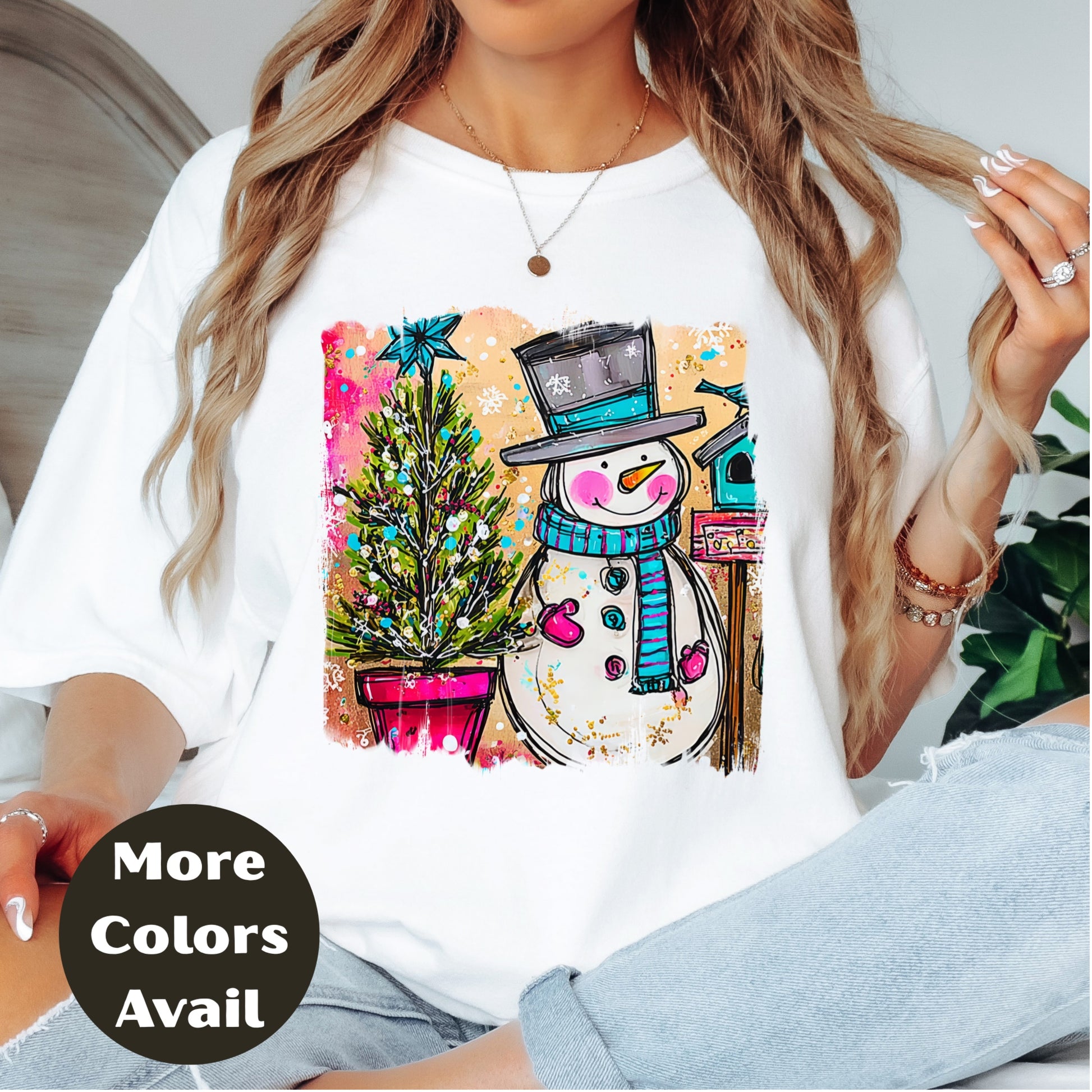 Get ready for a festive winter with this adorable Snowman & Christmas Tree Shirt or Sweatshirt! Featuring a cheerful snowman in a top hat and scarf next to a decorated Christmas tree, this playful design is perfect for holiday gatherings, gift-giving, or just spreading some Christmas cheer.