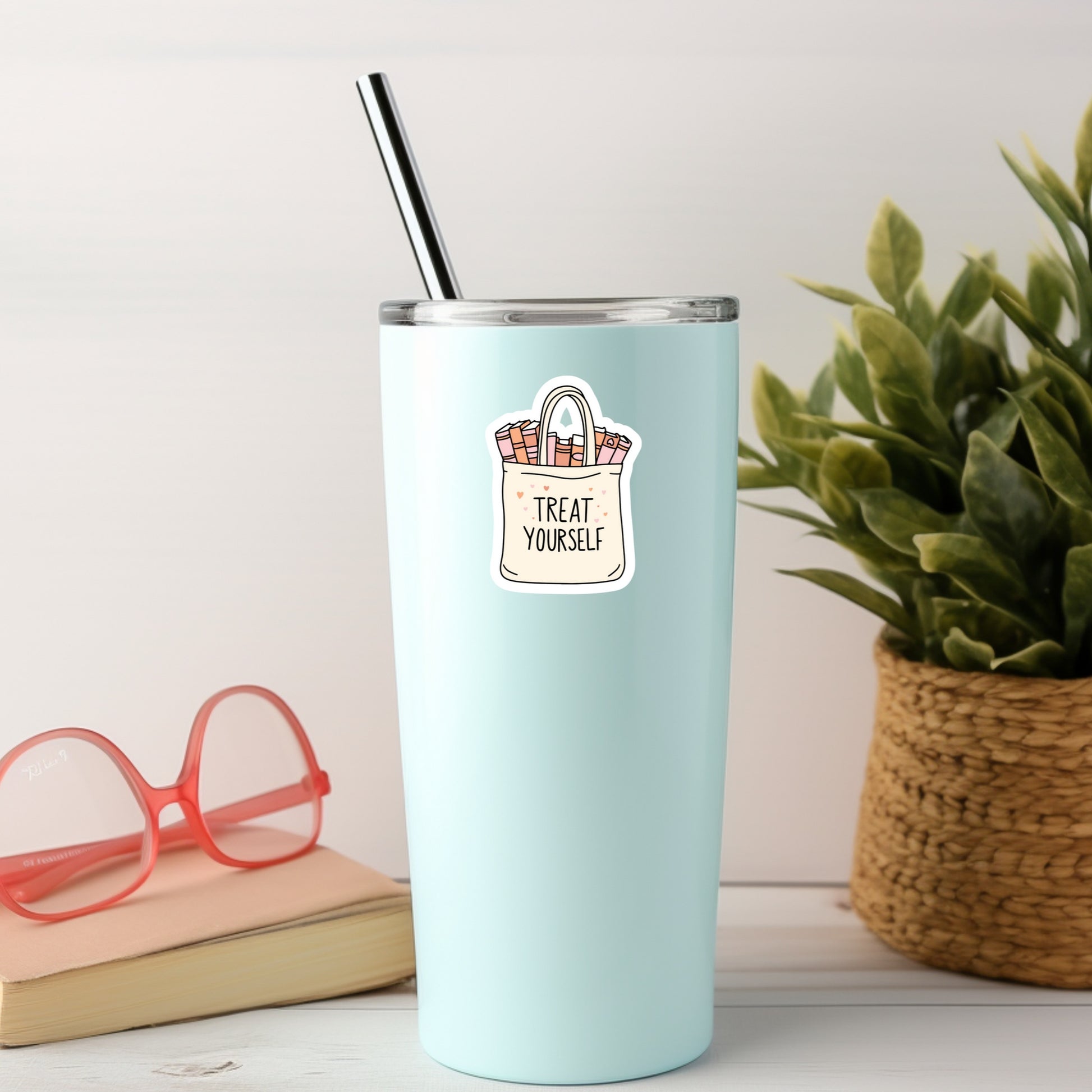 Treat Yourself Book Reader Sticker β 3" Waterproof Bookish Sticker with Holo Overlay β Reading, Books, Reader Gift, Book Lover, Bookstore Merch