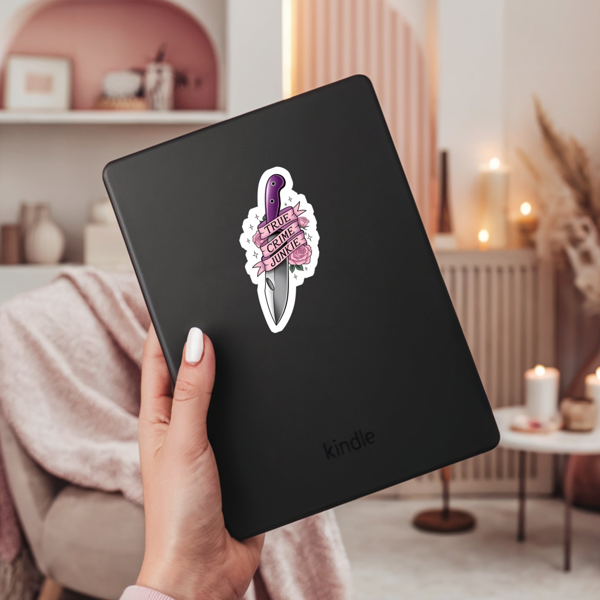 True Crime Junkie Book Reader Sticker β 3" Waterproof Bookish Sticker with Holo Overlay β Reading, Books, Reader Gift, Book Lover, Bookstore Merch