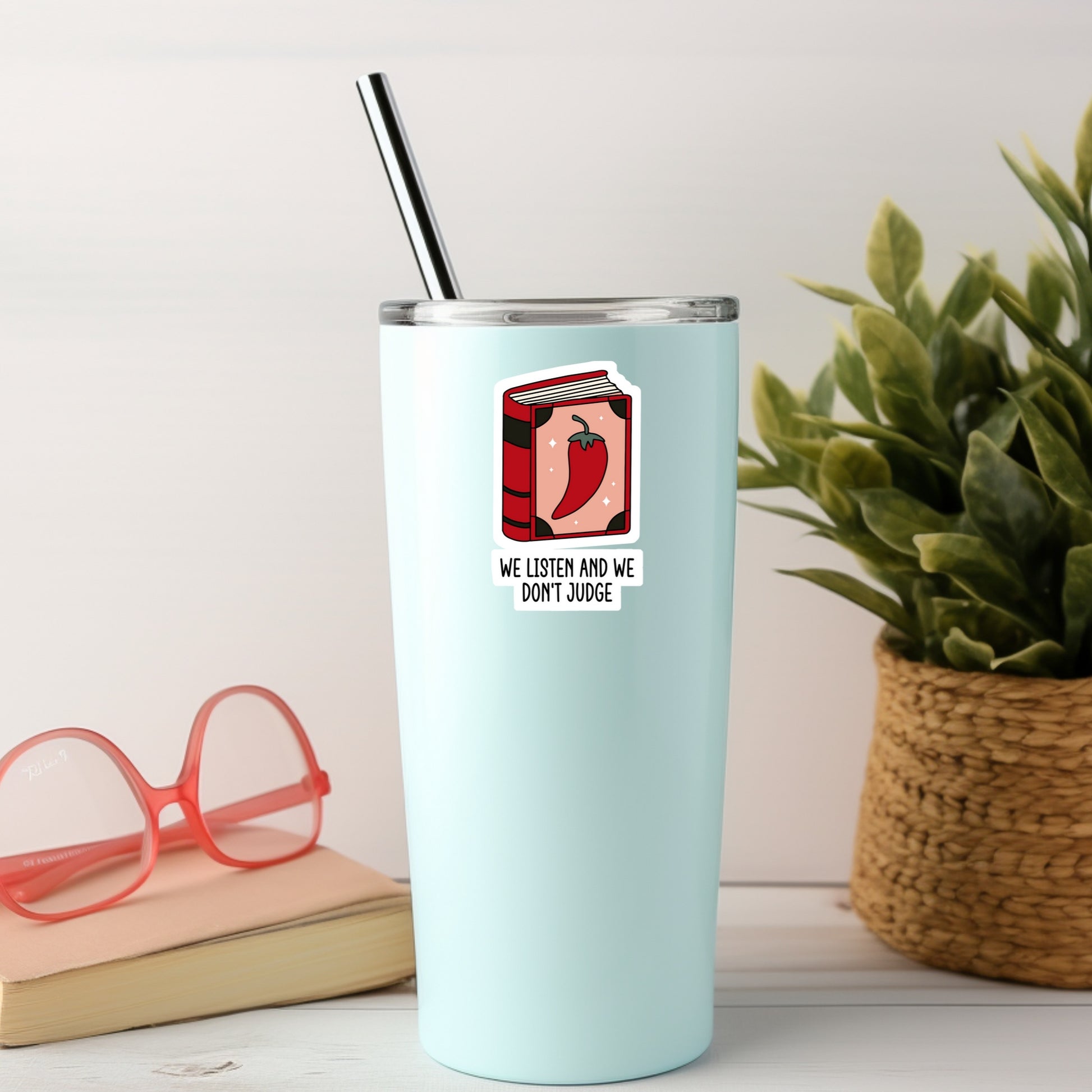 We Listen and We Don't Judge SMutty Book Reader Sticker β 3" Waterproof Bookish Sticker with Holo Overlay β Reading, Books, Reader Gift, Book Lover, Bookstore Merch
