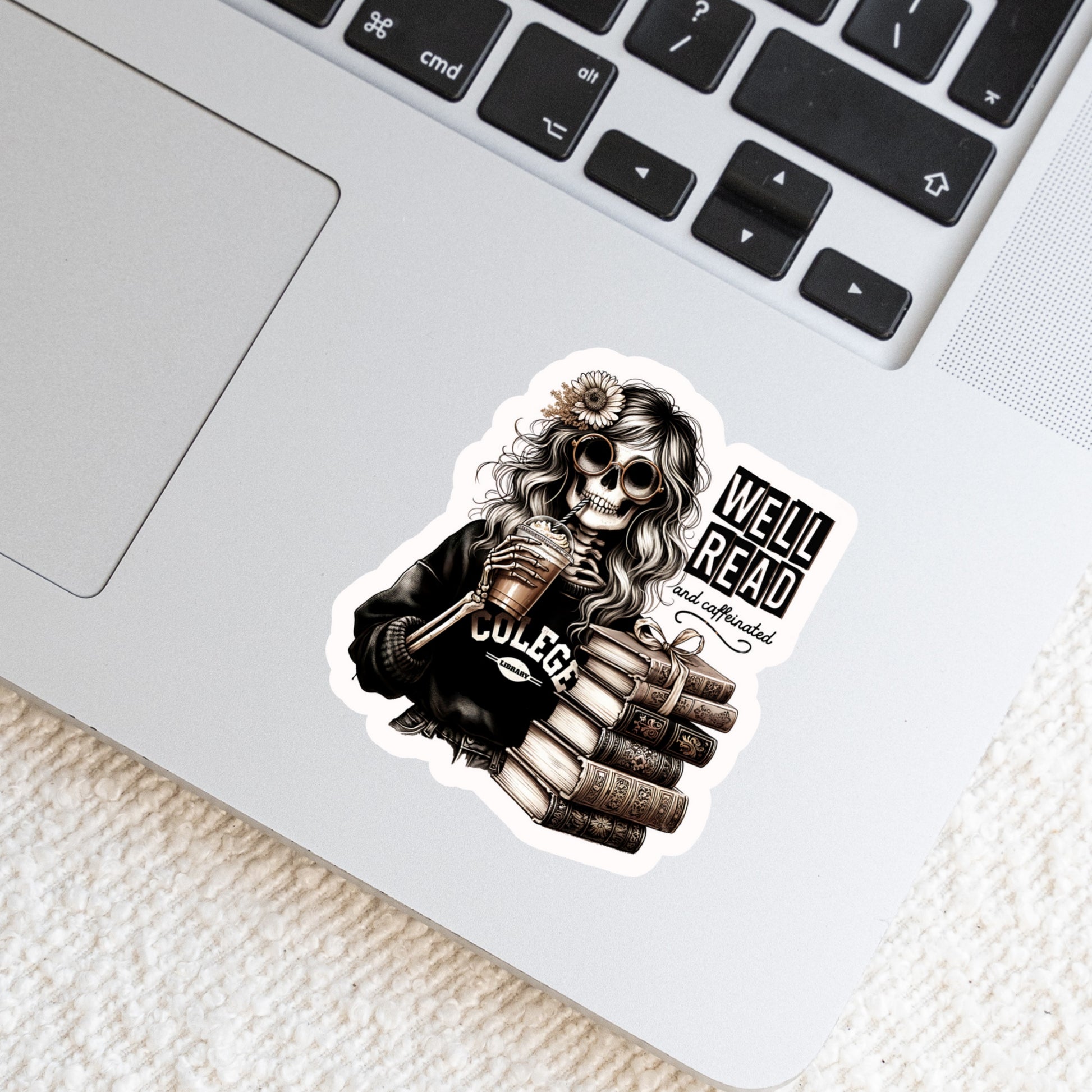 Well Read and Caffeinated Coffee Lover Book Reader Sticker β 3" Waterproof Bookish Sticker with Holo Overlay β Reading, Books, Reader Gift, Book Lover, Bookstore Merch