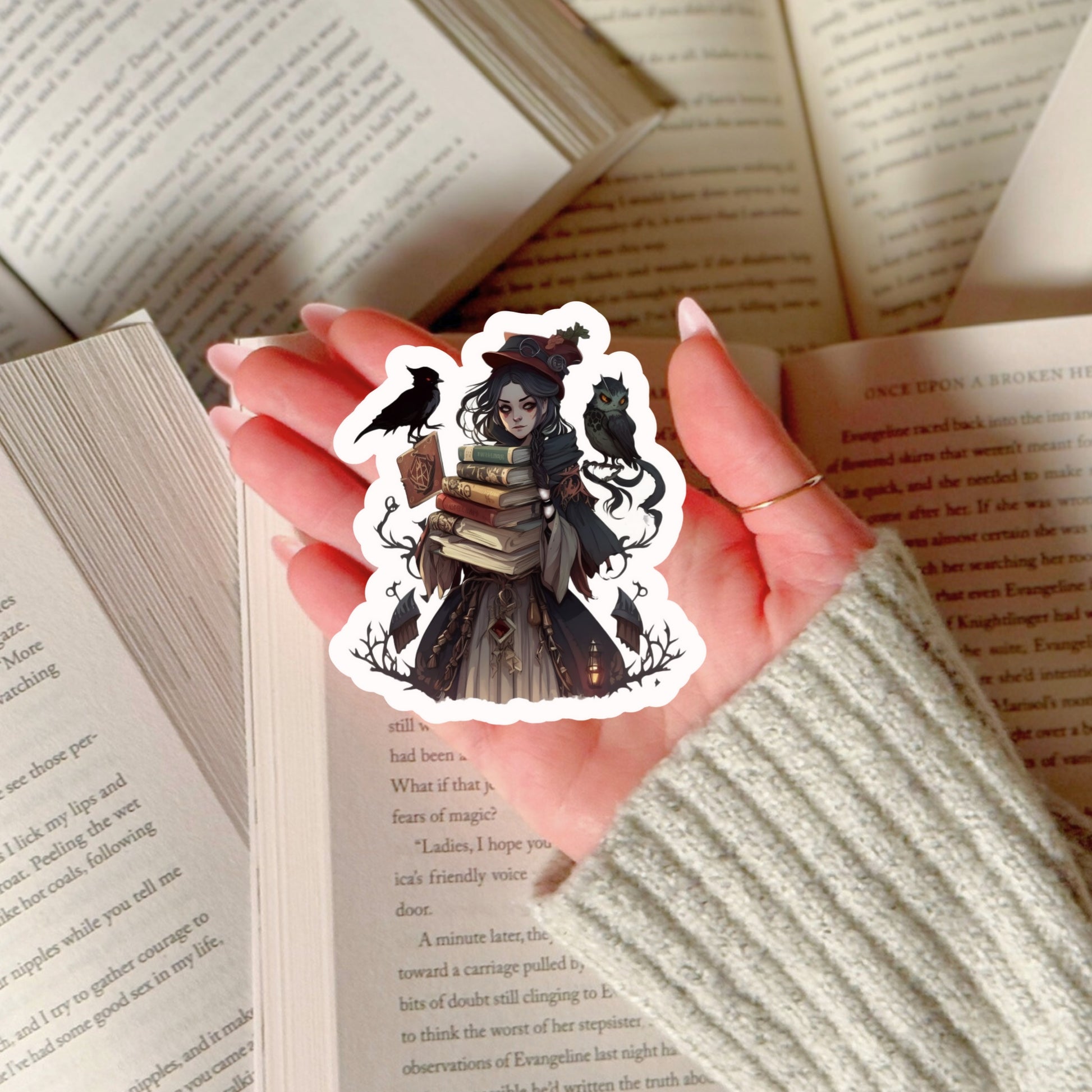 WItchy Raven Book Reader Sticker β 3" Waterproof Bookish Sticker with Holo Overlay β Reading, Books, Reader Gift, Book Lover, Bookstore Merch